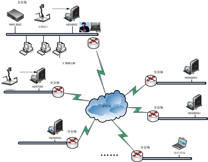 根據用戶的實際情況和需求,我們為用戶推薦使用了寶利通卓越系列高清產品。上海風電公司總部采用100M電信光纖接入,各分公司采用5M-10M電信寬帶。帶寬及采用同家運營商的網絡情況較為理想。這也為會議的正常召開確立了良好的基礎。我們在上海總部設置了一臺外置 MCU RMX500,總部采用高清終端HDX8000,同時,在上海、江蘇、黑龍江等分公司各配置了一臺高清終端HDX7000,建立起多點點的會議系統。
