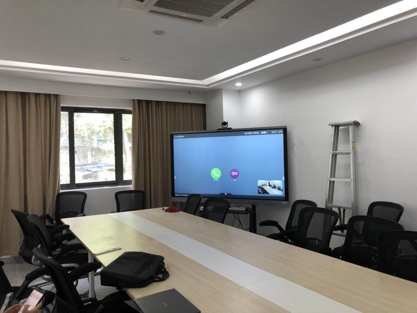 目前該小學是一個分校,有2樓和5樓2個會場,5樓會場配置一套寶利通GROUP550,2樓會場布置一套寶利通GROUP310,跟總部可以有效的便捷溝通,均采用移動支架搭配顯示器(電視機或會議平板)這種方式,便于移動,增加會議的靈活度,其中會議平板的隨時觸摸批注、編輯更讓會議更高大上,易操作,易編輯,更加具有時代感和適用性;
